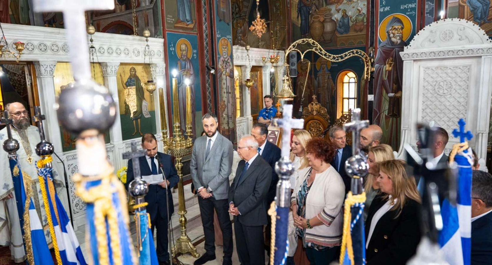 Τον Πανηγυρικό της ημέρας εκφώνησε εντός του Ιερού Ναού o αντιδήμαρχος Παιδείας και Δια Βίου Μάθησης Χρήστος Γούναρης.