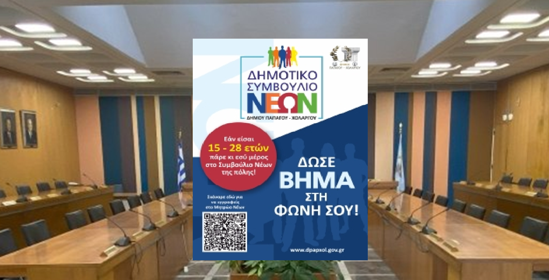 Ο Δήμος Παπάγου Χολαργού καλεί τους νέους και τις νέες της πόλης, ηλικίας 15 έως 28 ετών, να εγγραφούν στο Μητρώο Νέων του Δήμου και να συμμετάσχουν ενεργά στις επερχόμενες εκλογές για το νέο Δημοτικό Συμβούλιο Νέων (Δ.Σ.Ν.), που θα διεξαχθούν την Κυριακή 7 Δεκεμβρίου 2025.
