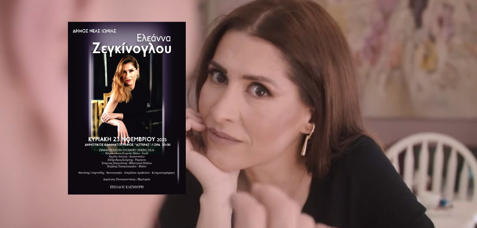 Ο Δήμος Νέας Ιωνίας σας προσκαλεί σε μια ιδιαίτερη μουσική βραδία, με την Ελεάννα Ζεγκίνογλου την Κυριακή 23 Νοεμβρίου στις 8:00 μμ στον Αστέρα.