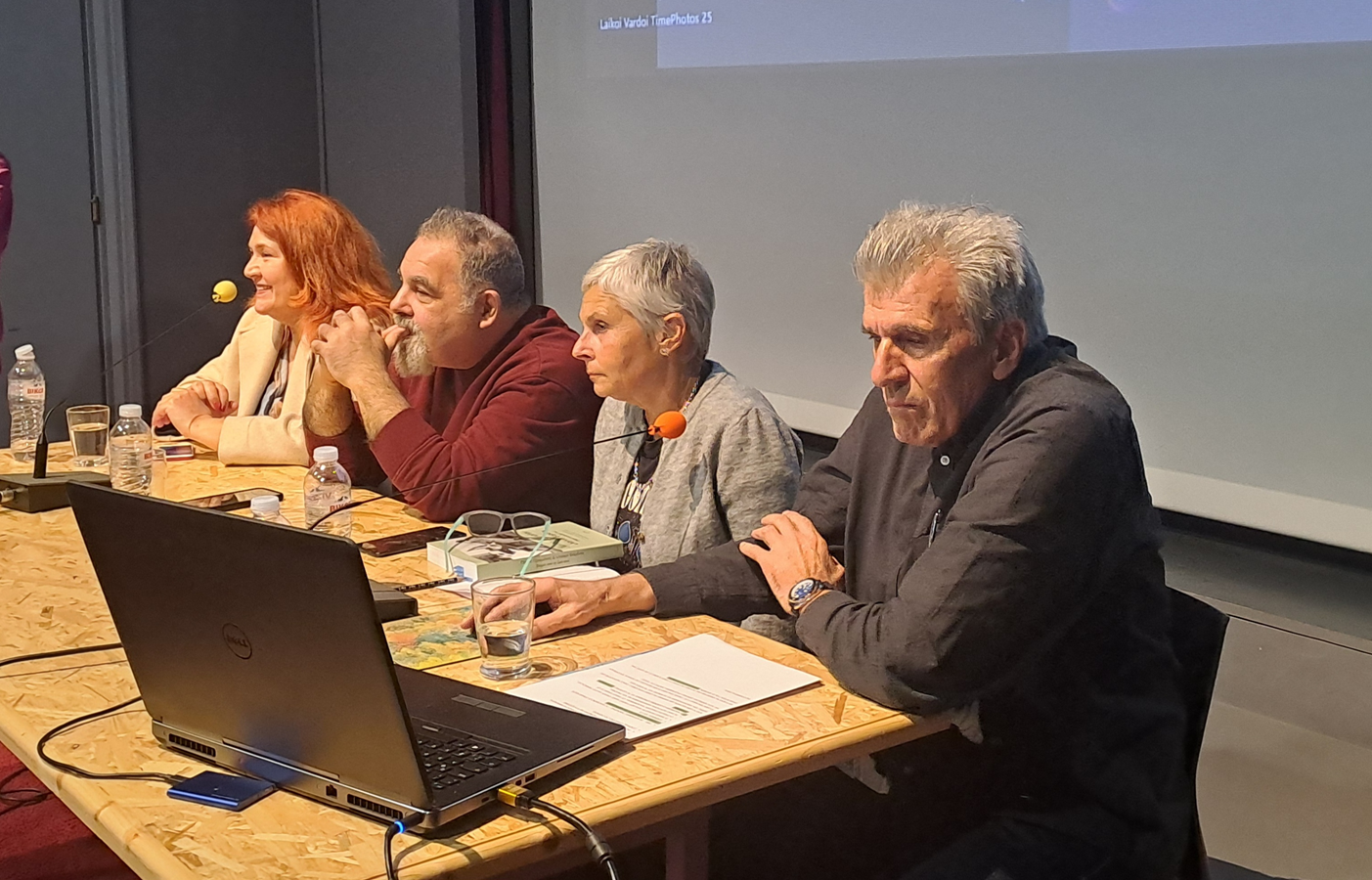 Ο σκιτσογράφος Σπύρος Δερβενιώτης, η δημοσιογράφος Μαρία Μαρκουλή, η συντονίστρια της εκδήλωσης, δημοσιογράφος και συγγραφέας, Ευγενία Λουπάκη και ο κινηματογραφιστής Θάνος Κουτσανδρέας χαρτογράφησαν το μοναδικό έργο ζωής του Πάνου Γεραμάνη για την ανάδειξη του λαϊκού πολιτισμού, το οποίο διασώζεται πλέον και στο βιβλίο που παρουσιάστηκε.