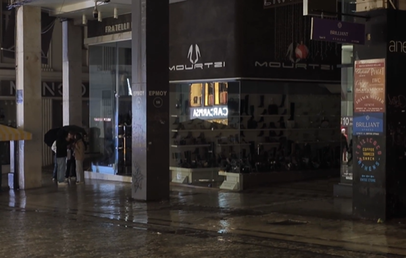 «Μπλακ Άουτ» στην Ερμού λόγω της κακοκαιρίας- Καταστήματα και δρόμος στο σκοτάδι