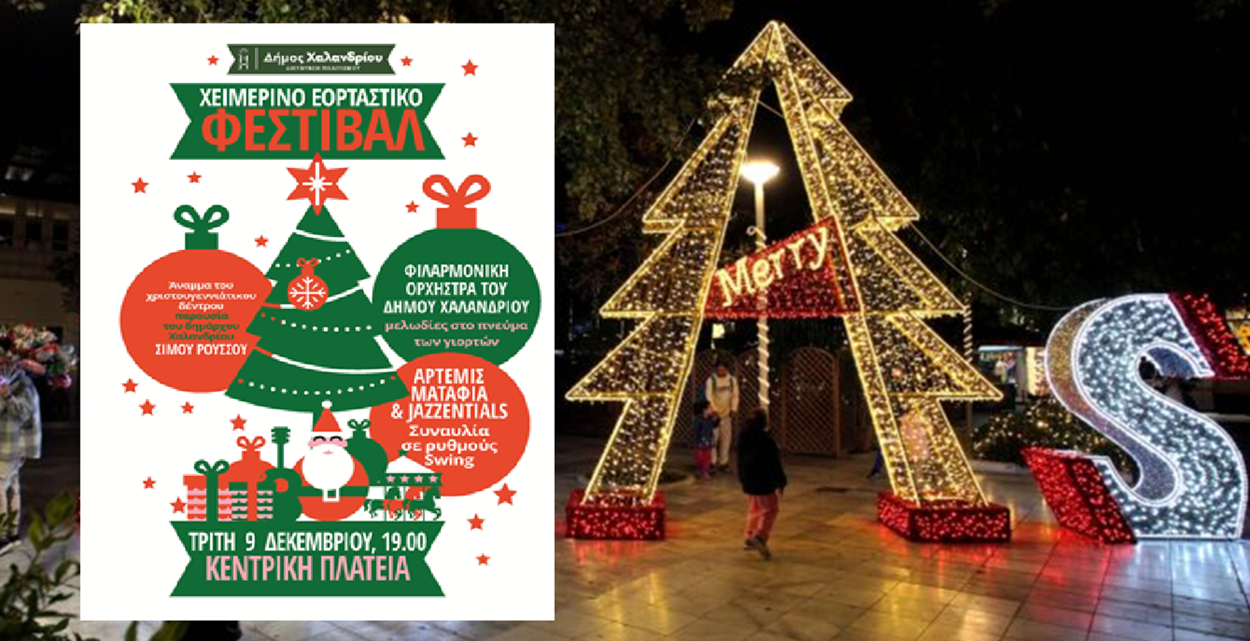 Με το άναμμα του χριστουγεννιάτικου δέντρου στην κεντρική πλατεία, παρουσία του δημάρχου Χαλανδρίου Σίμου Ρούσσου, την Τρίτη 9 Δεκεμβρίου, στις 7 το απόγευμα, ανοίγει το Χειμερινό εορταστικό Φεστιβάλ 2025 του Δήμου.