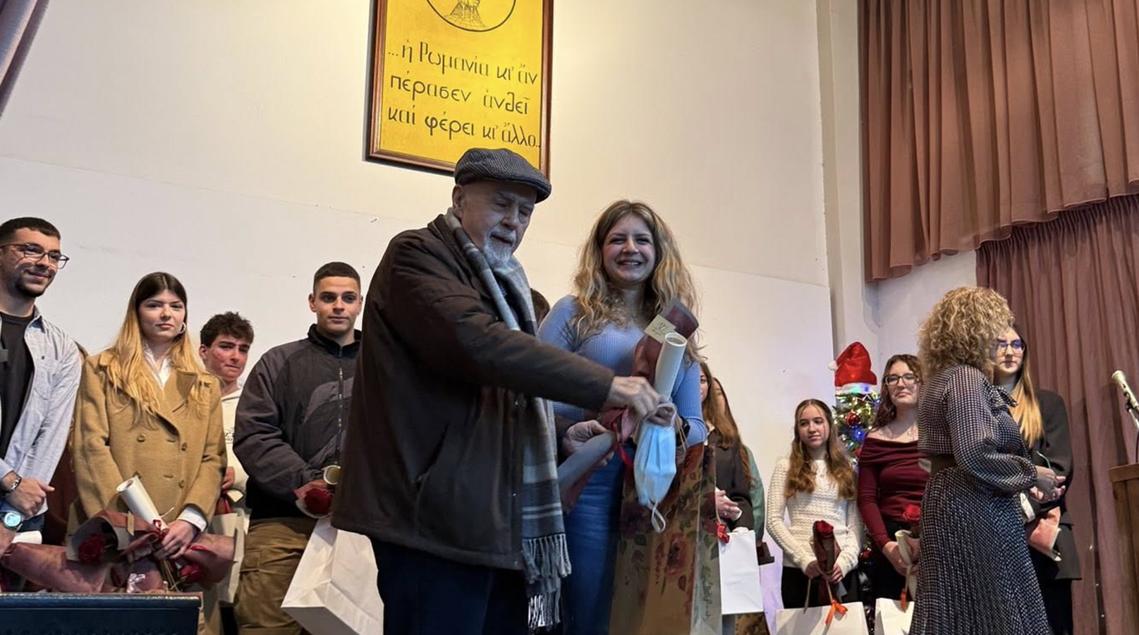 Η πιο συγκινητική στιγμή της εκδήλωσης ήταν η παρουσία στο βήμα του πρώην Δημάρχου Μελισσίων και ευεργέτη των βραβείων Δημήτρη Τομπουλίδη.