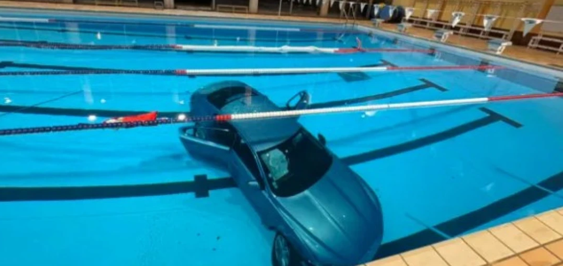Το βράδυ της Τετάρτης, η 38χρονη οδηγός μιας Jaguar XF φέρεται να μπέρδεψε το φρένο με το γκάζι κατά τη διάρκεια ελιγμών στο πάρκινγκ. Το όχημα ανέπτυξε ταχύτητα, διέλυσε έναν προστατευτικό φράχτη, έσπασε τη γυάλινη πρόσοψη του κτιρίου και διέσχισε περίπου 30 μέτρα πριν βυθιστεί πλήρως στην εσωτερική πισίνα των 25 μέτρων.