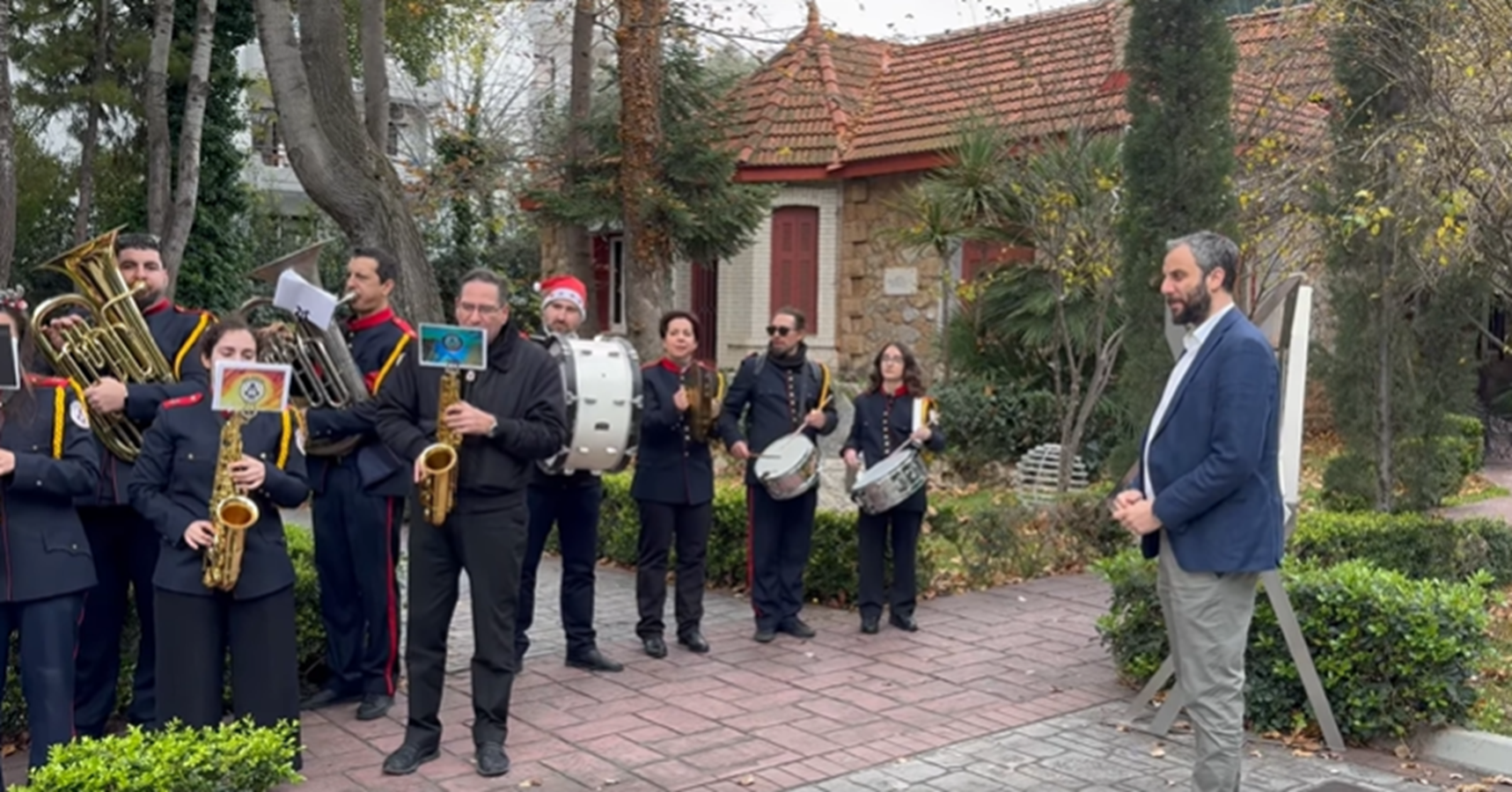 Η Παραμονή των Χριστουγέννων στα Βριλήσσια απέκτησε φέτος έναν ιδιαίτερο τόνο, καθώς η Φιλαρμονική Ορχήστρα του Δήμου, υπό τη διεύθυνση των αρχιμουσικών της, επισκέφθηκε το Δημαρχιακό Μέγαρο για να μεταφέρει το μήνυμα της γέννησης του Θεανθρώπου.