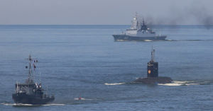 Ρωσικά πολεμικά σκάφη επιφανείας, τα οποία παρακολουθούσαν τη διαδρομή του τάνκερ.