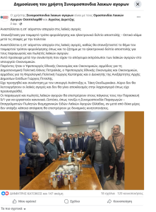 Στην ανακοίνωσή της η Ομοσπονδία Λαϊκών Αγορών αναφέρει τα εξής: