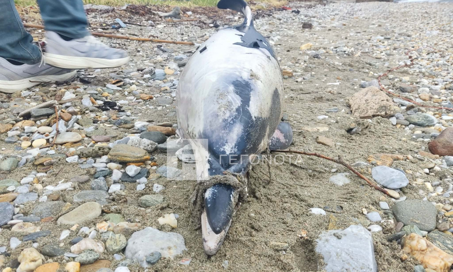 Το πιο ανησυχητικό στοιχείο είναι το ρύγχος του ζώου, το οποίο βρέθηκε δεμένο με υλικό που μοιάζει με φθαρμένο σχοινί. Το γεγονός αυτό εγείρει ερωτήματα για το αν υπήρξε σκόπιμη ανθρώπινη παρέμβαση πριν ή μετά τον θάνατό του.