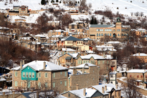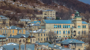 Αρχιτεκτονική: Επιβλητικά πέτρινα αρχοντικά με στέγες από γαλβανισμένη λαμαρίνα (για να γλιστράει το χιόνι) και περίτεχνες λεπτομέρειες.