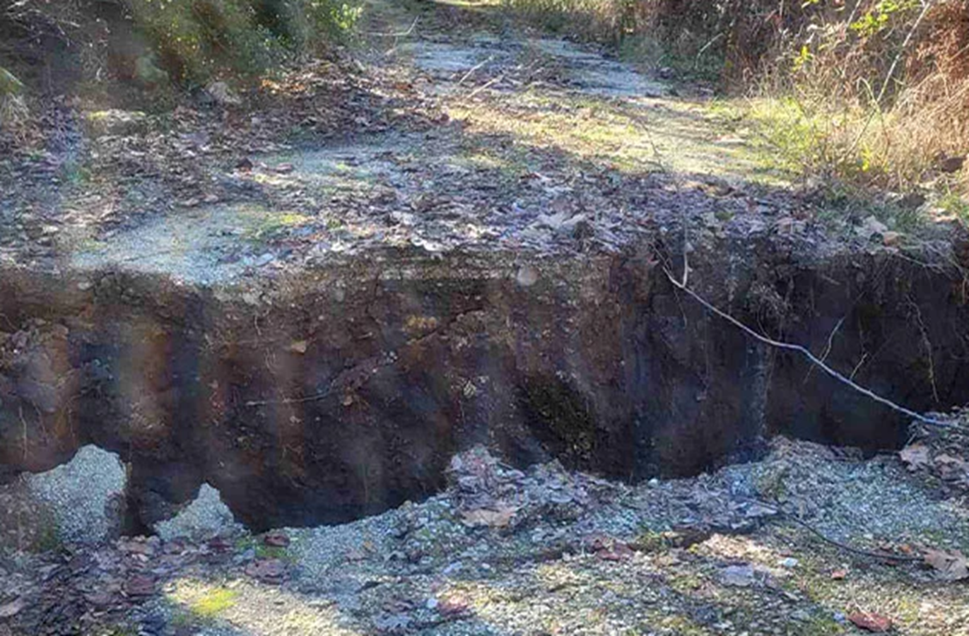 Ζημιές: Η κατολίσθηση έχει ήδη παρασύρει καλλιεργήσιμες εκτάσεις και ιδιοκτησίες, ενώ απειλεί άμεσα την οικιστική ζώνη, έχοντας ξεκινήσει από τα όρια του τελευταίου σπιτιού του χωριού.