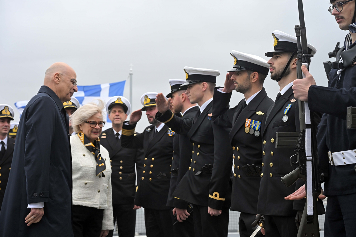 Συνάντηση κορυφής Δένδια – Βοτρέν πάνω στη νέα φρεγάτα «Κίμων»