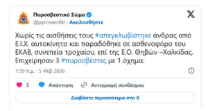 Στο σημείο έσπευσε ένα όχημα της Πυροσβεστικής με τρεις άνδρες, οι οποίοι απεγκλώβισαν έναν 57χρονο χωρίς τις αισθήσεις του.