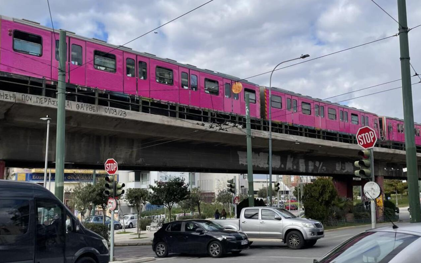 Τις τελευταίες ημέρες, οι επιβάτες και οι περαστικοί κατά μήκος της Γραμμής 1 (Πειραιάς-Κηφισιά) έρχονται αντιμέτωποι με ένα θέαμα που μοιάζει βγαλμένο από κινηματογραφικό σκηνικό: έναν συρμό του ΗΣΑΠ ντυμένο εξ ολοκλήρου σε έντονο, λαμπερό φούξια χρώμα.